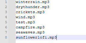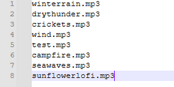 Customizable ambience: Audio from the sounds folder is automatically loaded, and can be further personalized using